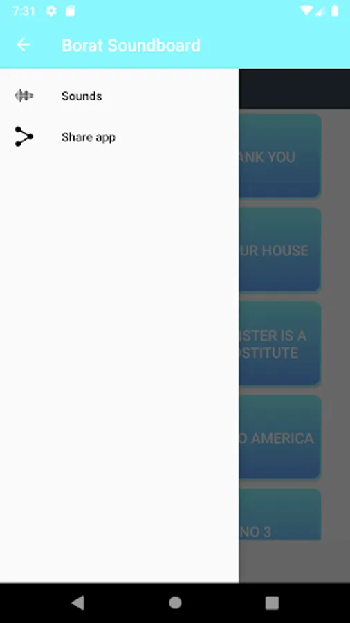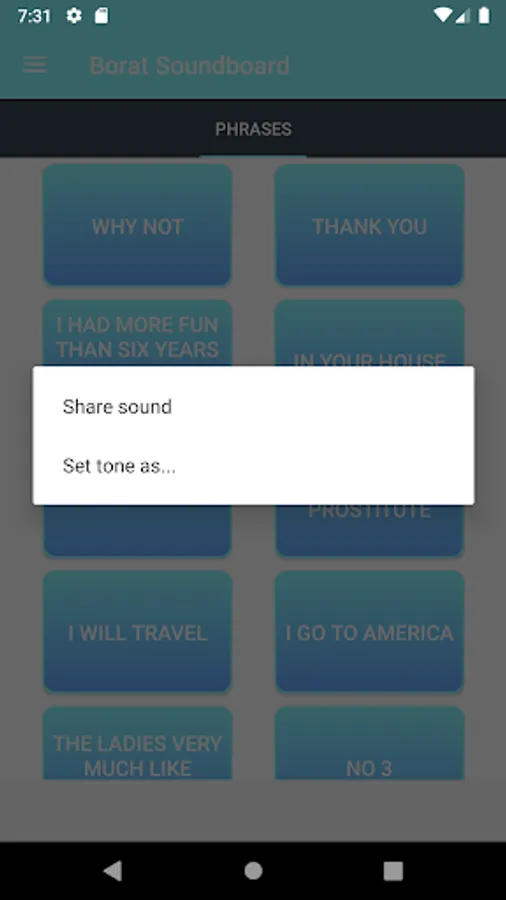 * You can share your favorite Borat sounds with your friends via sharing function.