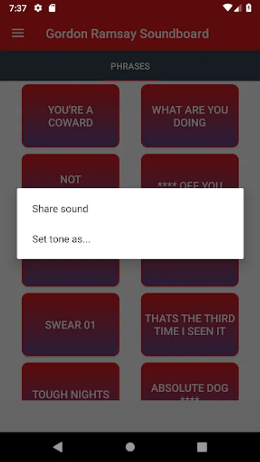 * You can assign Gordon Ramsay's phrases or sounds as ringtone, notification or alarm tone.