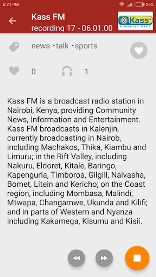 But there is one more thing in Radio, you should know about. It’s not only a huge amount of Kenyan online radio stations, it’s the one of the easiest application for internet radio listening. It’s completely free, it’s fast and doesn’t need any registration. Just install it and start enjoying your favorite online radio stations!