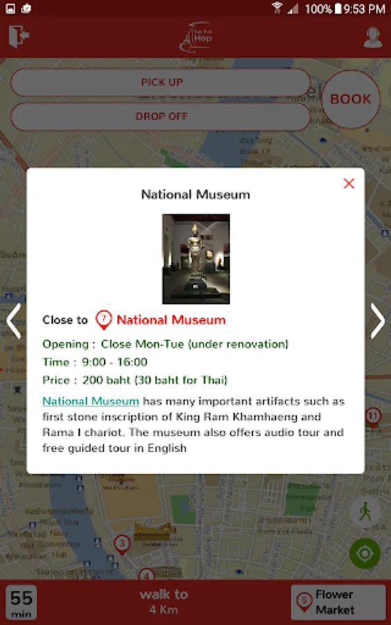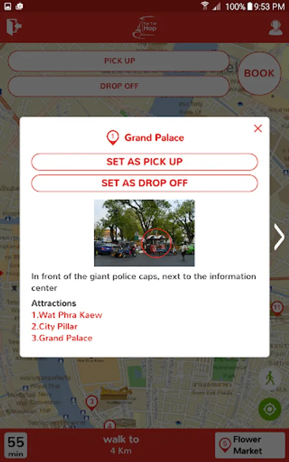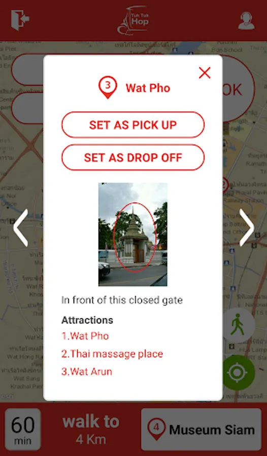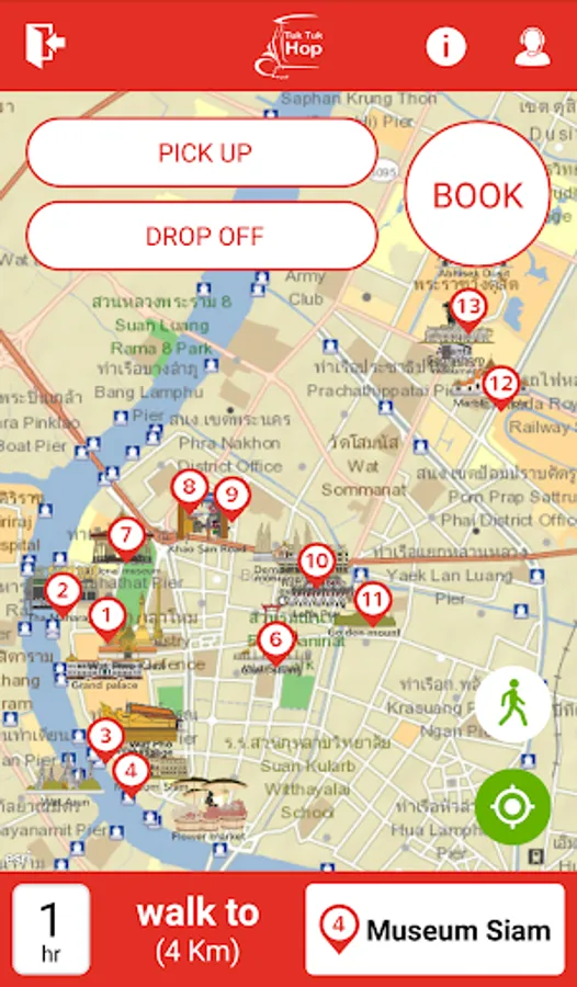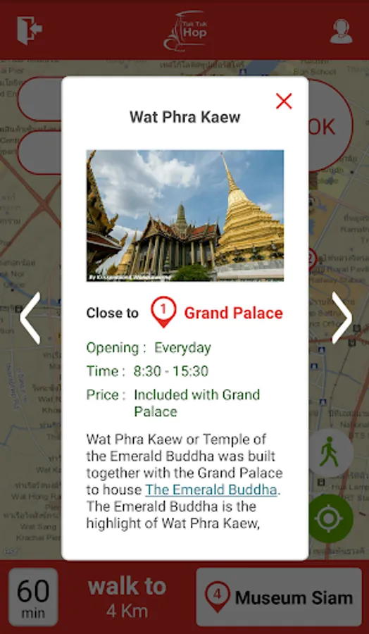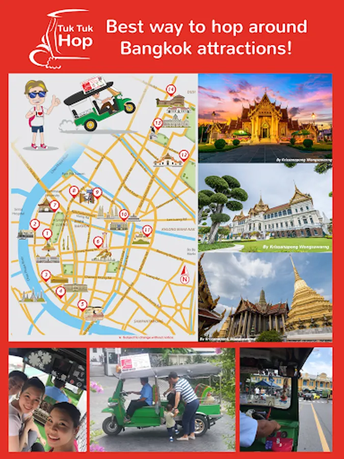 Welcome to Thailand! This app will let you hop on hop off around Bangkok main attractions in a tuk tuk. Pay once and you can hop to different places all day. The tuk tuk service is on demand so you can relax and enjoy each place at your own pace. It is safe, easy, and fun. No more haggling or worrying about scam. Even if you don’t use our service, you can still use our app to get useful information about attractions in Rattanakosin area.