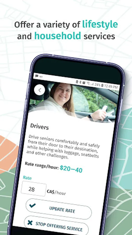 • Driver – Drive seniors to their destination, while helping with luggage, seatbelts and other challenges.