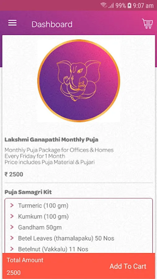 Our in-house Puja Store provide Puja Kits which cater to all your puja needs you wish to choose from and deliver it to you at the right time and the right place.