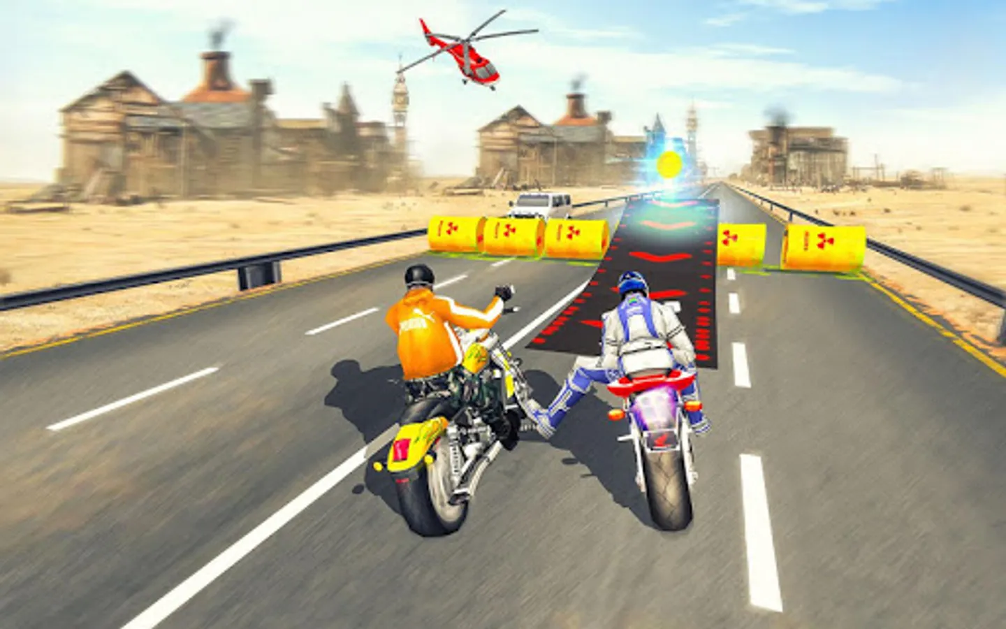 Bike Attack Race: Stunt Rider game is an ultimate addition to stunt bike racing games. Get ready to experience thrilling stunt bike attack racing game adventure and feel the real thrill of highway reckless race in endless manner. Play the most popular super bike game while enjoying the astonishing and detailed view of city asphalt racing tracks with extreme obstacles and hurdles and experience the most realistic bike simulation ever. Dodge the highway traffic rush while beating the rival racers and win this death bike racing in no time. The gameplay is addictive and the stunt racing challenge is quit real as you not only have to race but also have to fight with the evil rivals. Enjoy the combat racing games mission while riding your stunt bike and reach the finish line ASAP. Cross the difficult hurdles and jump over the incredible ramps while performing insane acrobatic stunts like a real stunt master. So brace yourself for the real bike attack racing game and race like a super hero.