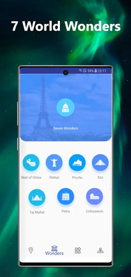 7 World Wonders sections has a list of 7 world wonders along with their 3d view and directions. The 7 world wonders are: