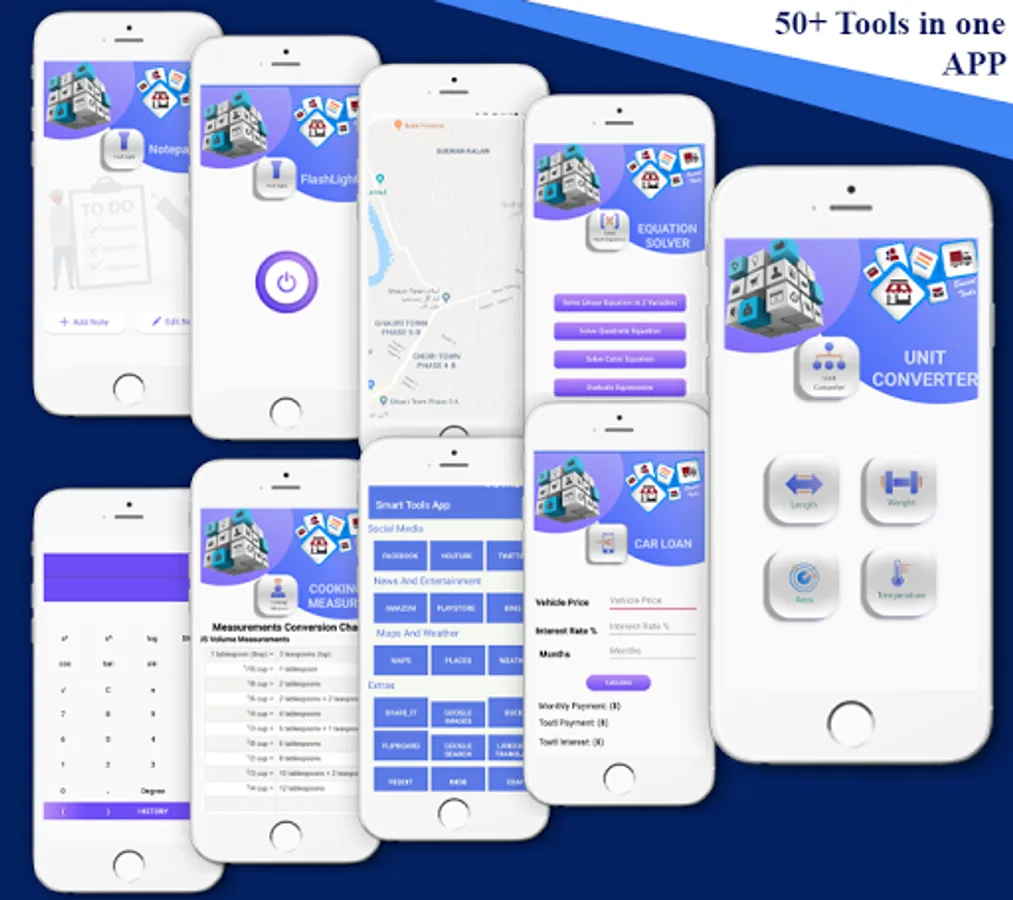 Tools kit All tools Free is a free smart tools app for android that contains brainstorming tools, smart tools of important daily life in one single application. This is easy to use for all age groups. It contain multiple smart toolkit handy tools that are listed below.