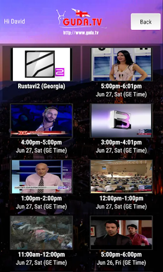 GUDA TV is a multimedia entertainment package that provides live broadcasting for registered users worldwide. Watch Georgian Channels with Live/Recorded Programming and 7 day DVR.