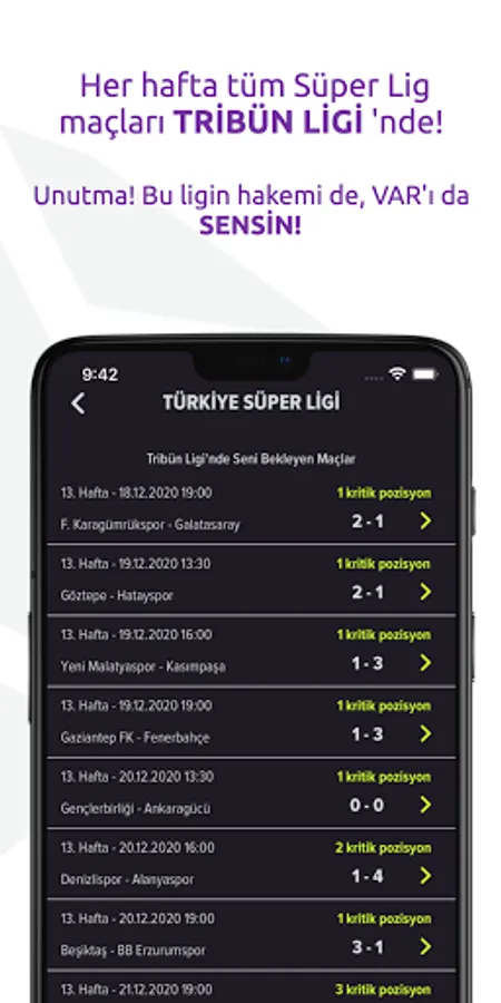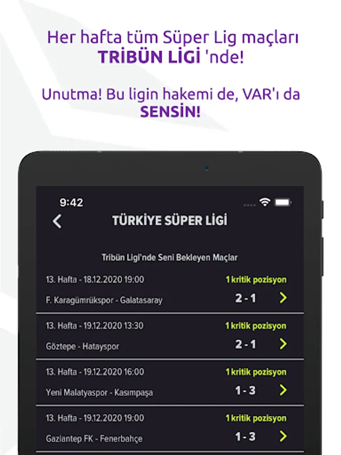 In the Tribune League application, you can evaluate the critical positions we have compiled from the matches of the week and you can be the referee of the match!