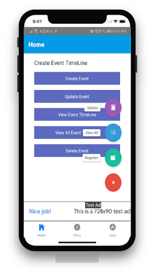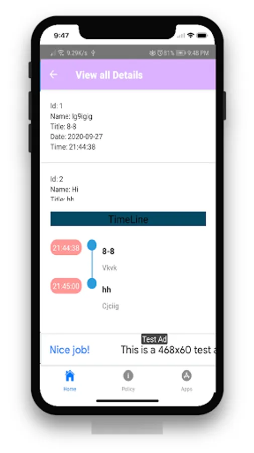 policy of the AdMob app advertising. We have not changed any kind of the logic behind this application to show or load in user Interface in Project Management (Timeline).