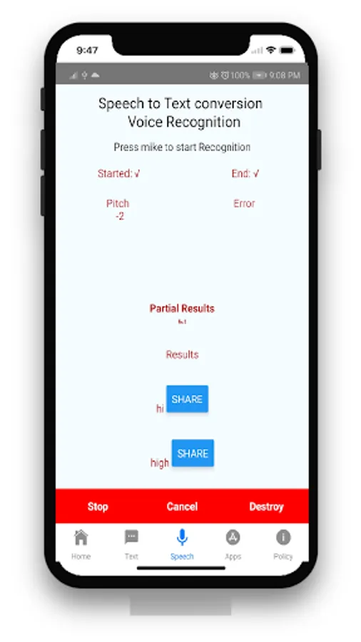Voice Recognizer app is made for those who have daily need to communicate or talk with another person. Voice Recognizer is similar to the Speechnotes, Audio to text, voice notes, voice notebook, voice recognization and many more. Voice Recognizer stores the speech by converting into text by natural language processing into app and then user can share it to the another person. also user can write the content and app will pronounce it as it will be in the language English. Voice Recognizer tool is vey useful to store your quick data and share them instead writing it. Voice to text converter is simple to use for dictating/recognizing text It is a Voice typing in all languages which can be sent as an SMS or copied and pasted into all other apps existing in your device.
