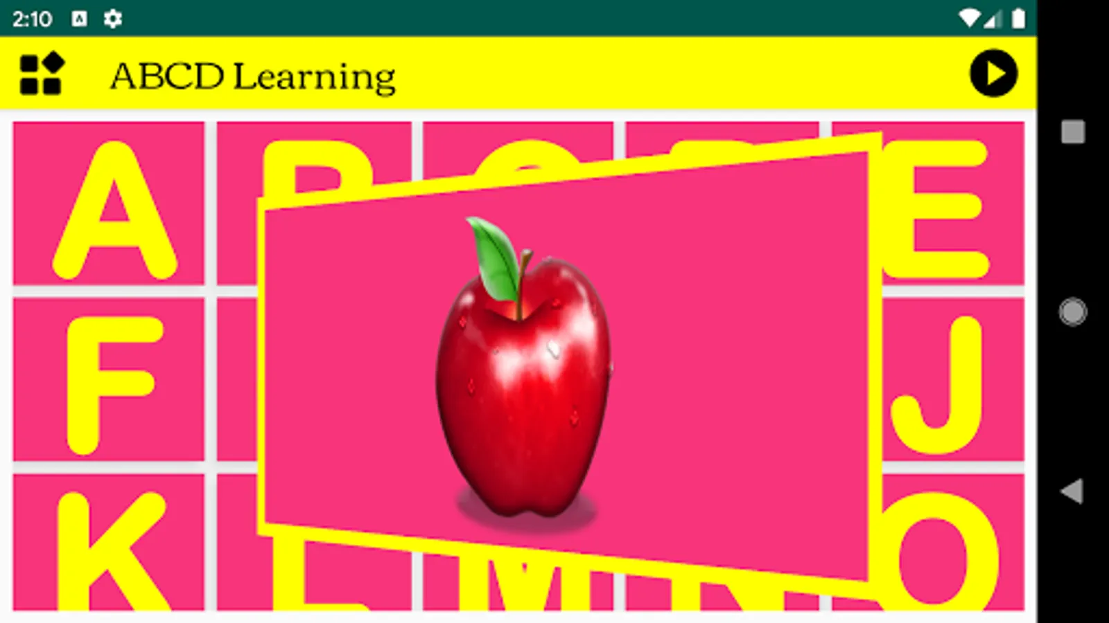 This App will enable your child to learn their ABC (and other basic things) in more interactive way with smooth graphical interaction and lots of fun. (Offline)