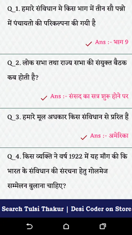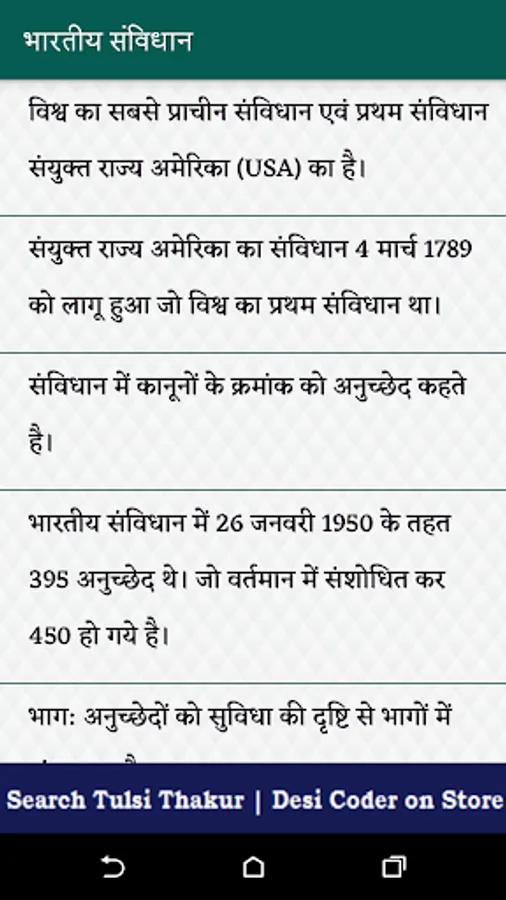 Bhartiya Samvidhan application contains the information(Notes & MCQ) about constitution of india in Hindi Language.