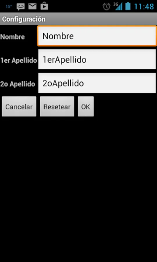 User data can be configured from a configuration screen that appears when you click on the main screen.