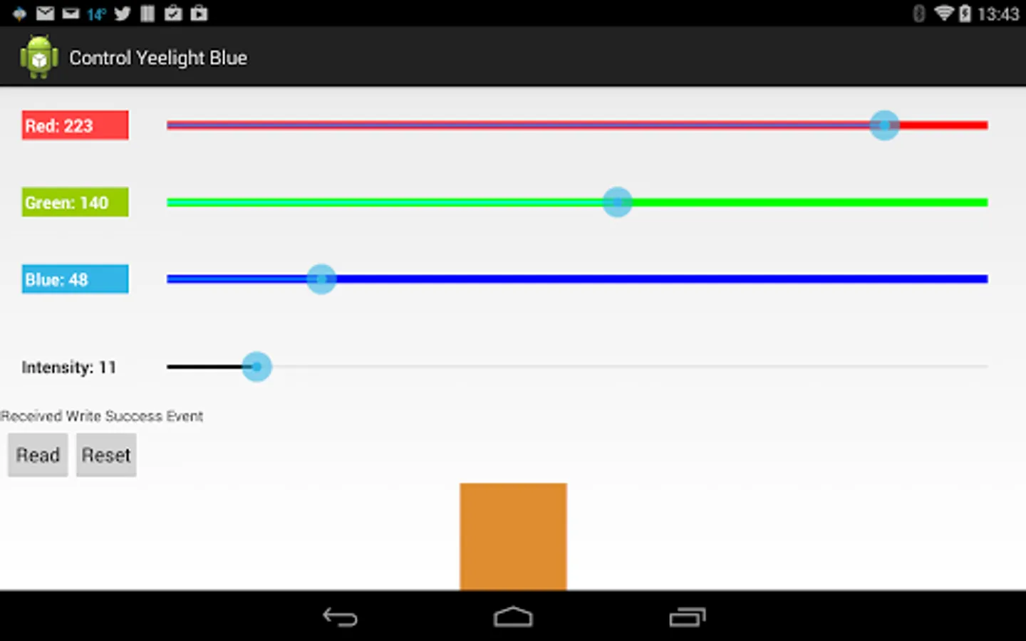 If the Yeelight Service is found, an activity can be launched to control colour and intensity of Yeelight Blue bulb