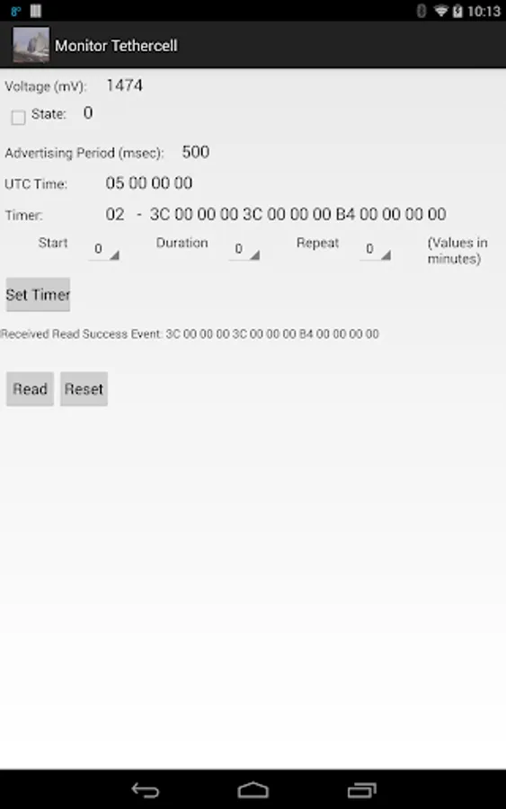 If Tethercell service is found, an activity can be launched to change the state (OFF/ON) of the Tethercell battery, check its current voltage level and define timers to switch it on/off.
