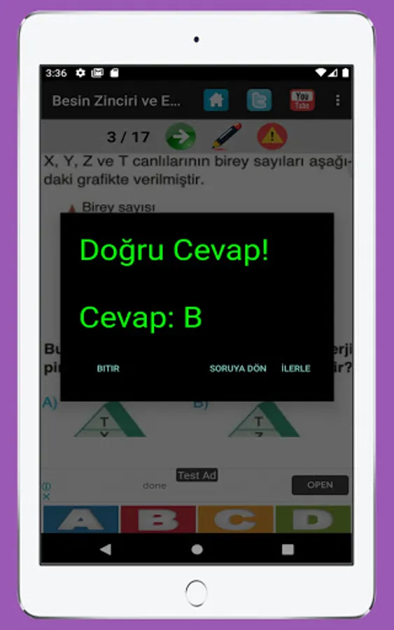 While solving the tests, you can perform operations on the questions by clicking the pencil button. After you finish the tests, you can learn your score with the number of correct and incorrect.