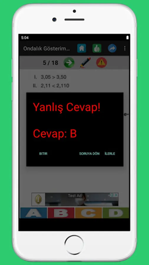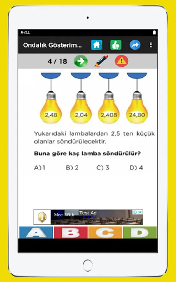 While solving the tests, you can click on the pencil button to perform actions on the questions. After completing the tests, you can find out your score with the number of correct and wrong you made.