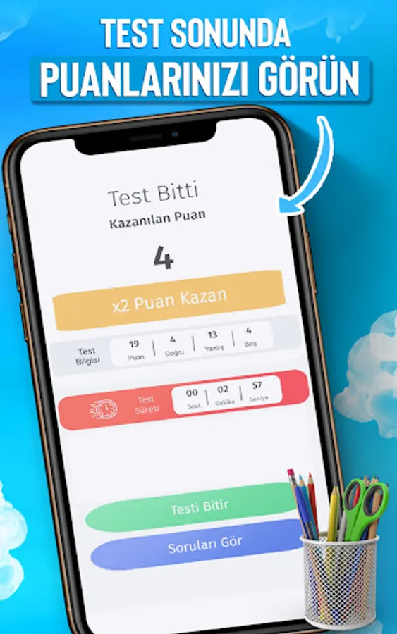 💥 You can make your score x2 by watching rewarded ads after the test.
