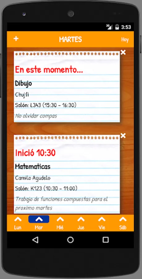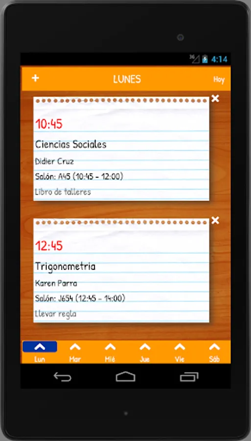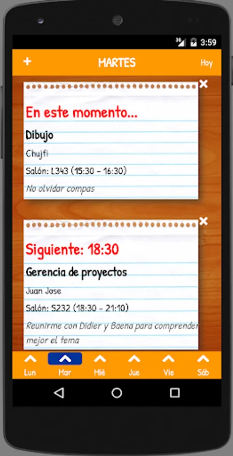 With this simple but useful application you can always keep handy, agile, information and schedule your classes, you will quickly see the teacher and place assigned sorted by day. Just enough to open the application to see which of the subjects is about to begin or who are already in development.