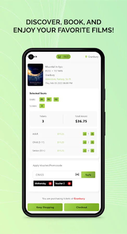 Movie Ticket Booking: Easily browse through our extensive movie selection, view showtimes, and book your tickets directly from your mobile device. Say goodbye to long queues and secure your seats in advance.