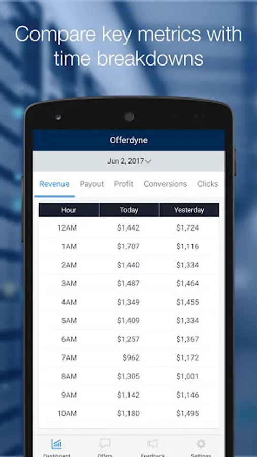 • See totals for revenue, clicks, conversions, payout and profit