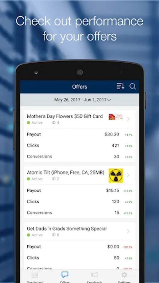 • View key stats for your network overall and individual offers
