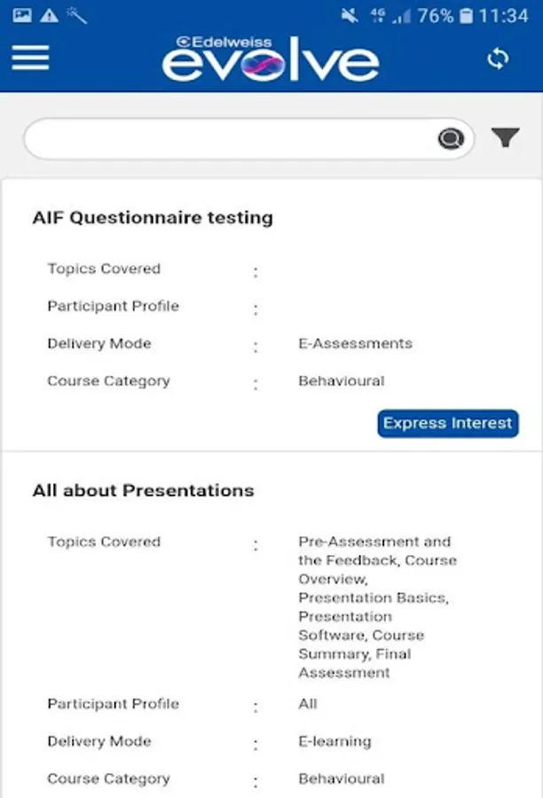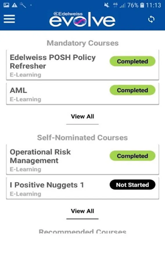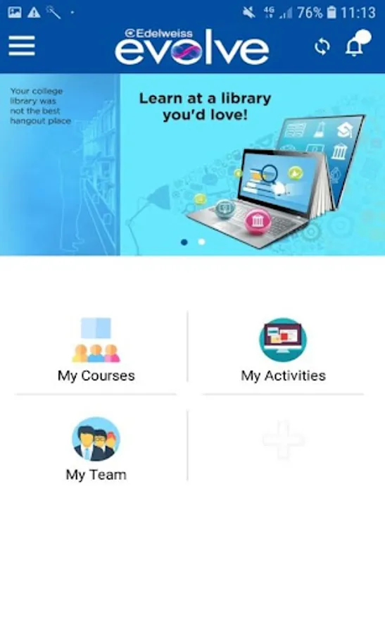 Evolve is a learning platform that facilitates e-learning for employees across the organization. The prime objective of this application is to drive employees to learn anytime at their convenience through this app. It helps ease the administration, documentation, tracking, reporting and delivery of Edelweiss training programs. It delivers and manages all types of content, including video, courses, and documents. It is used to create professional structured course content. It also helps control which content an employee can access, track progress and engage employees with contact tools. Admins can manage courses and modules, enroll employees or set up self-enrollment, see reports on their progress.