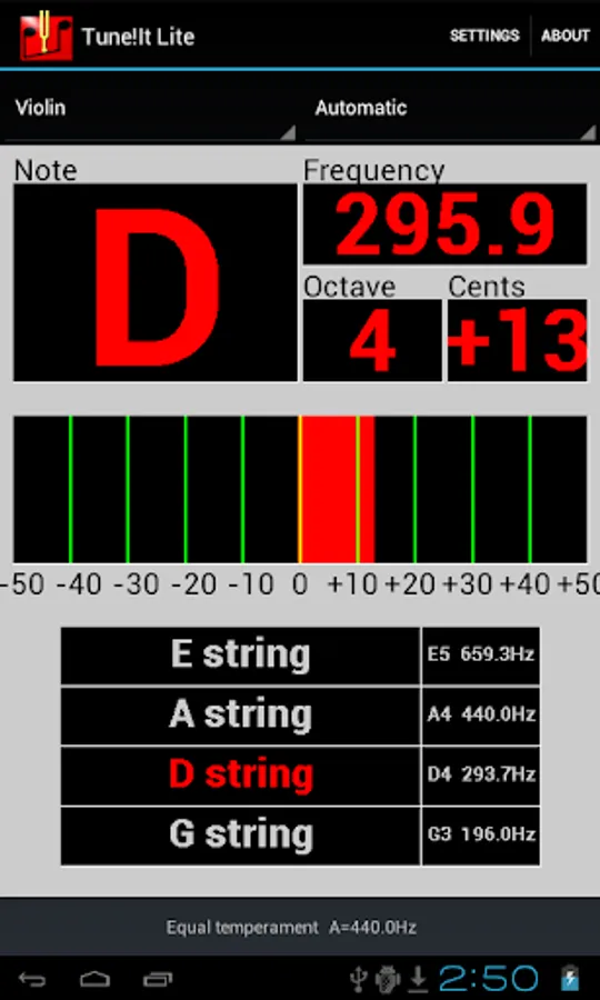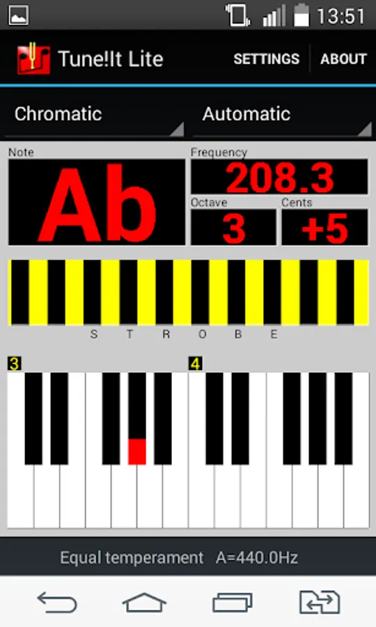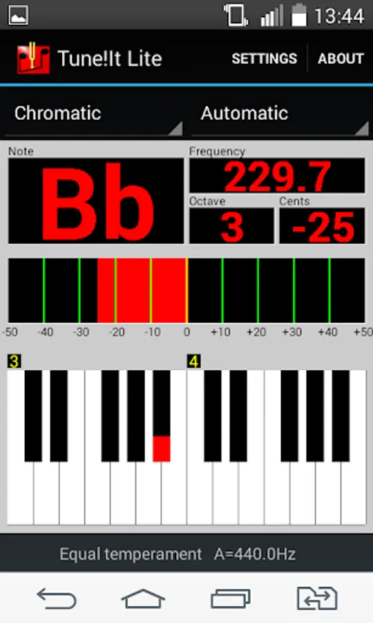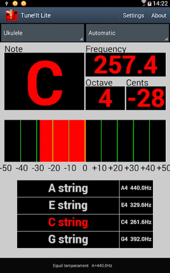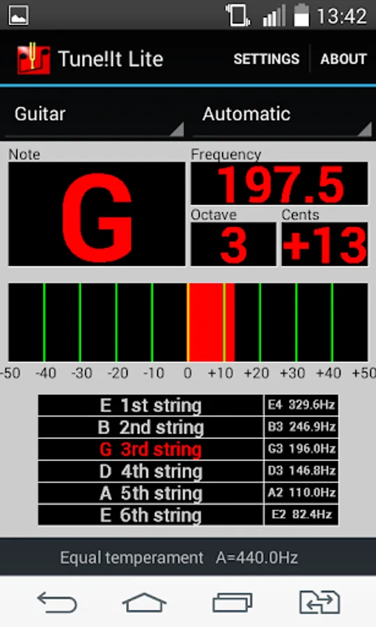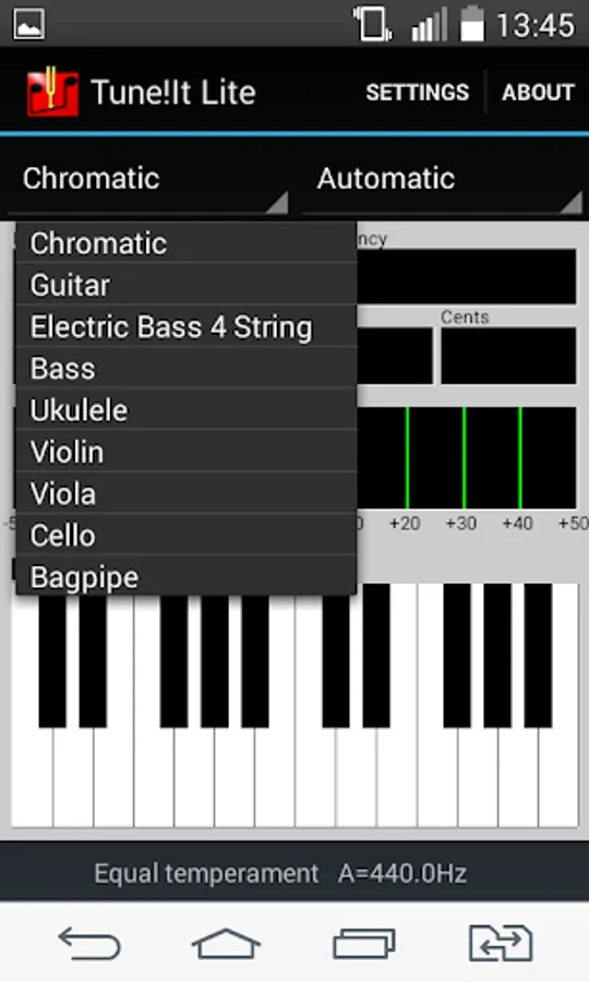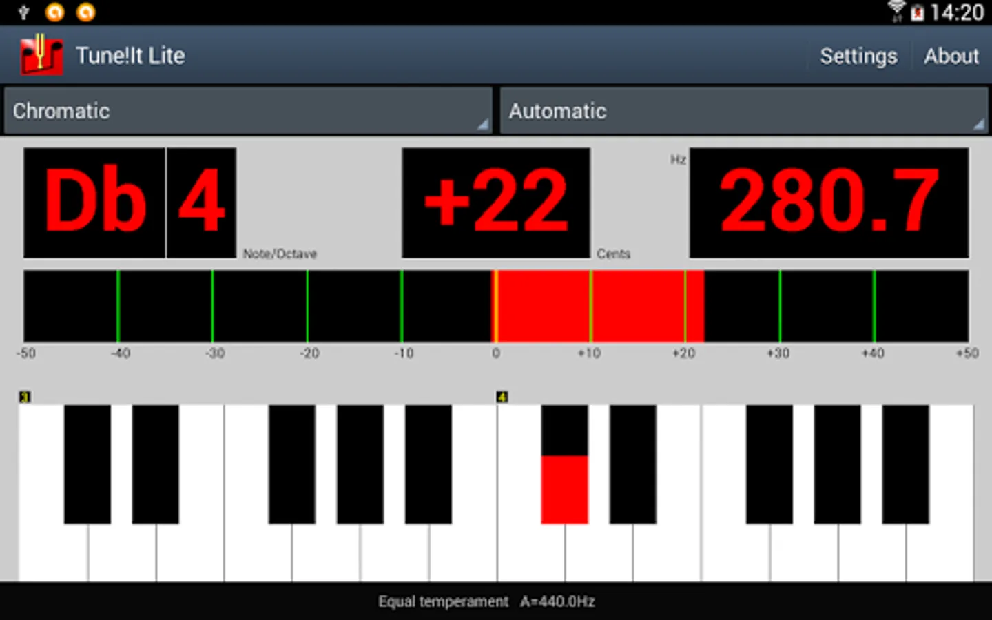 Tune!It Lite is a basic version of the professional musical instrument tuning program Tune!It. It lets you easily and accurately tune your instruments by displaying note, frequency and deviation in cents . You can select between automatic chromatic tuning or customised tunings for guitar, bass, ukulele, violin, viola, cello and bagpipe.