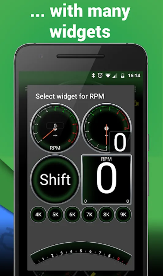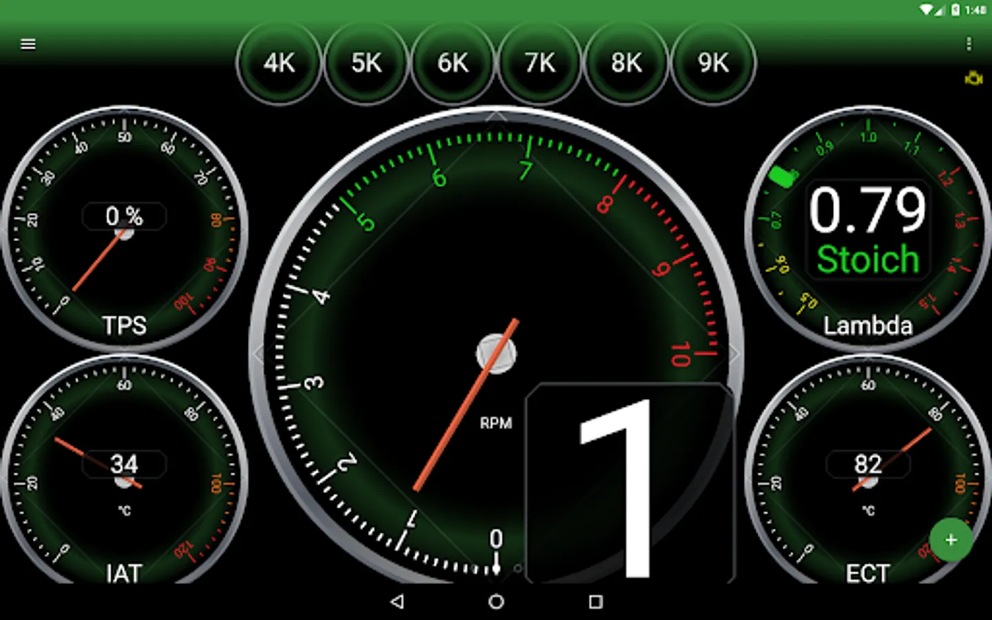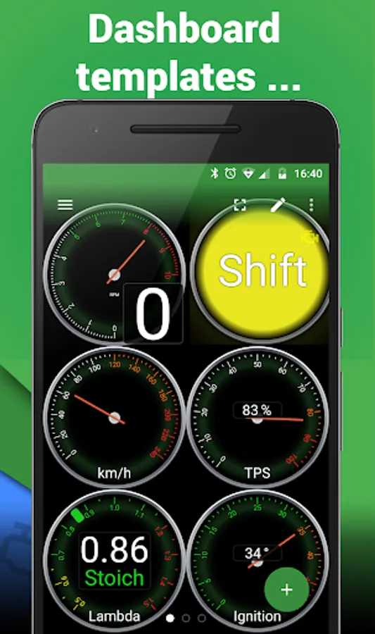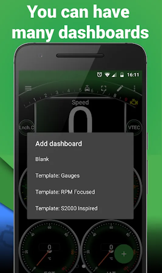 Customize your own dashboard with the different widgets / gauges you like from within the app!