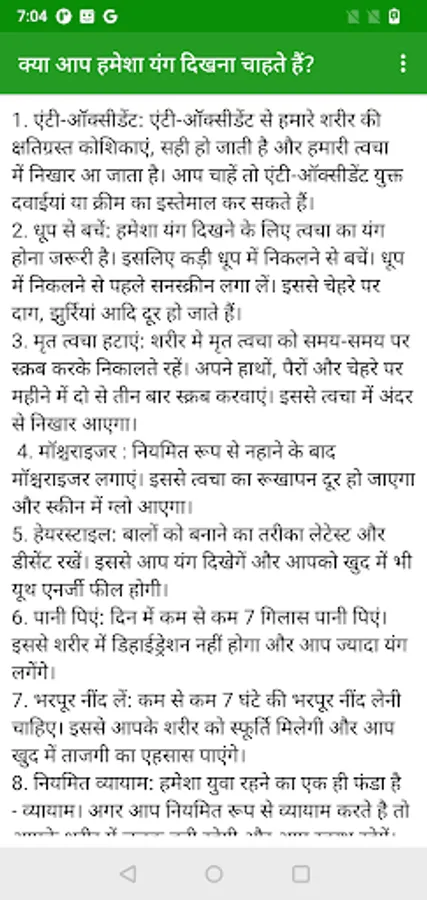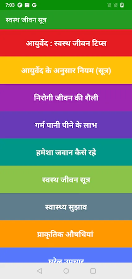 The ayurvedic way is the best way to heal. This application contains several ayurvedic therapy, tips, treatment and medicine in hindi. So, all of you who trust in the power of nature, install the app right now.