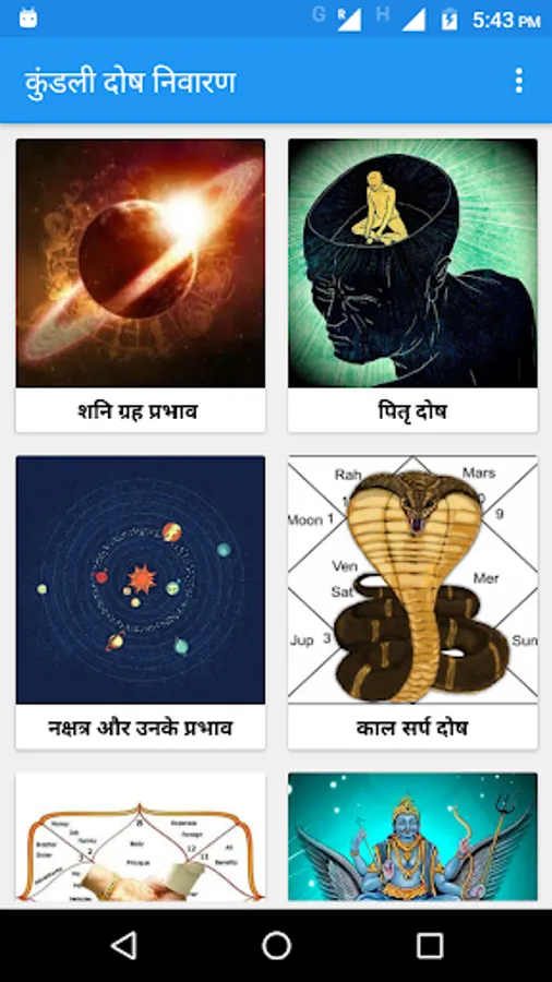 Get this astrology app and know if you have any kundli dosh like shani sade sati, mangal dosh, rahu dosh, ketu dosh, kaal sarp dosh and get remedies for your kundli dosh and instant relief and better influence of grah.