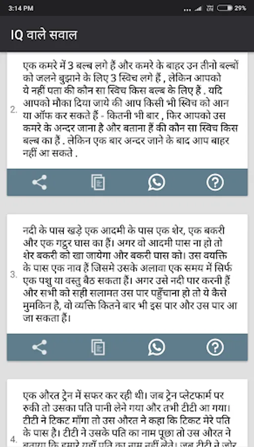 Get riddles and answers to share and challenge your friends. You can vote for your favorites, leave comments and submit your own riddles in hindi to share.