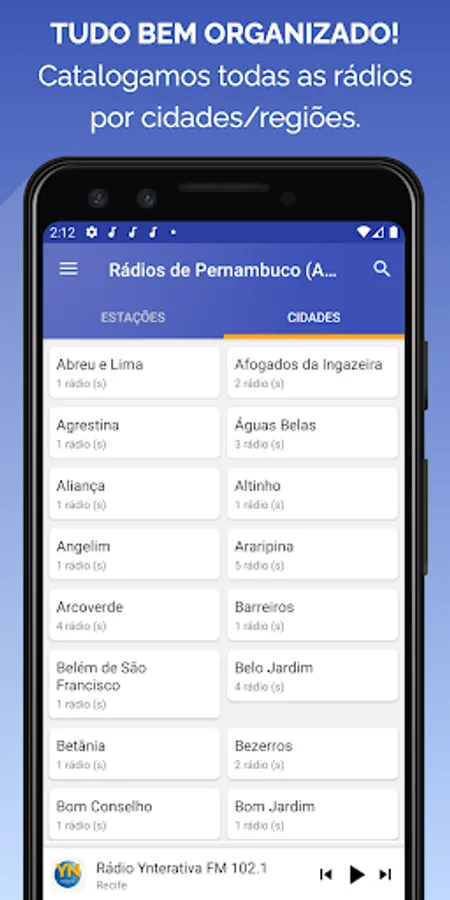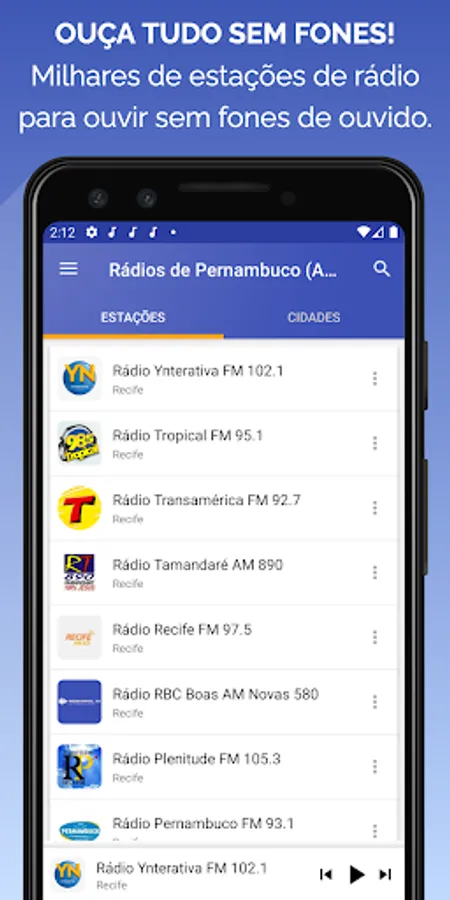 Do you already know our app? We catalog the best Pernambuco radio stations, allowing you to listen to them in digital quality, without the need for headphones. Everything is organized by city, in an intuitive and easy to navigate way. Choose your favorite station and stay tuned so you don't miss any details!