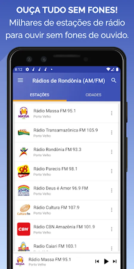 Our application catalogs radio stations from Rondônia, allowing you to listen to them in digital quality, without the need for headphones. Everything is carefully organized by city, in an intuitive and easy to navigate way. Choose your favorite station and stay tuned into the wonderful world of radio!