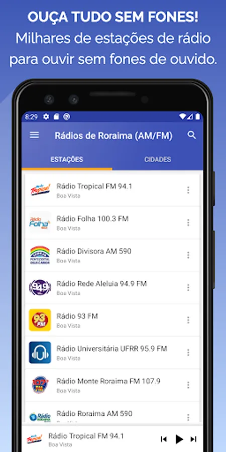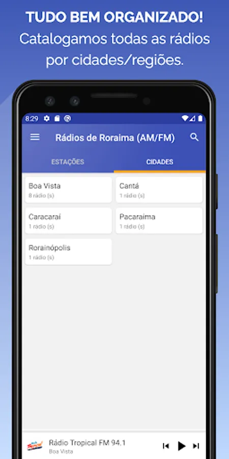We have cataloged the best Roraima radio stations so you can listen without headphones in digital quality. Our app is organized by cities, making it easy to use. Just choose your favorite radio station and stay tuned to enjoy it to the fullest!