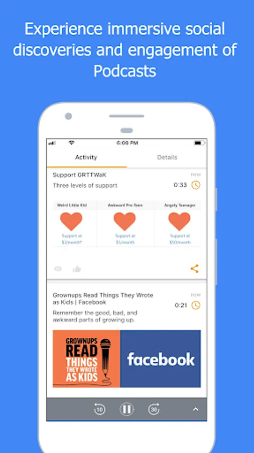 See the another side of the story with rich contextual content that accompanies your listening for a deeper, more engaging experience. Explore and discover new ways to interact with a Podcast and share captivating moments from shows you listen to. No need to pause and search for what's being mentioned in the podcast. Simply click on the image, website, hashtag, quiz, poll, or rating event as you listen to it being played.