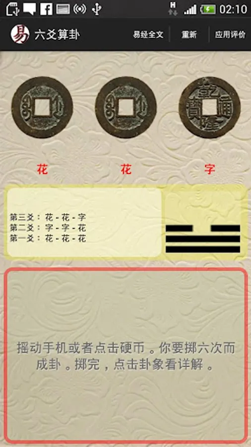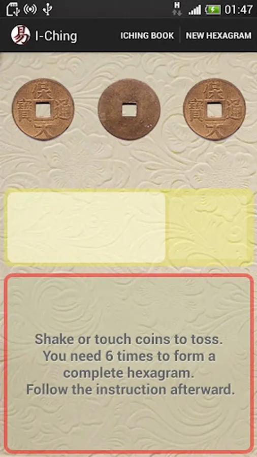 - Shake or touch coins then WAIT A SECOND for a line to appear (this increase the randomness of the coin)