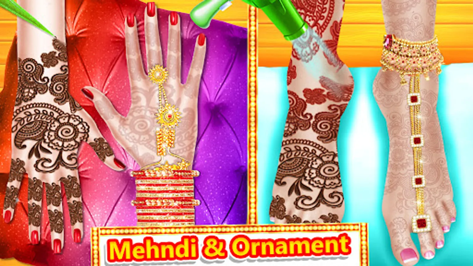 :Pre-Wedding Rituals: Indian Hindu wedding game usually start with pre-wedding rituals that involve the bride and groom's families. These rituals include engagement, mehndi ceremony (henna application on the bride's hands and feet), sangeet ceremony (musical night), and haldi ceremony (turmeric paste application).