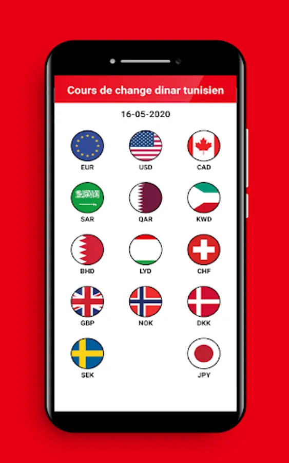 Here are the exchange rates of the main currencies: USD USD, Euro EUR, Yen JPY, Pound GBP, Swiss Franc CH, Canadian Dollar CAD, Saudi Riyal, Riyal Qatari, Kuwaiti Dinar, Bahraini Dinar, Libyan Dinar, Norwegian Krone, Danish Krone , Swedish crown.