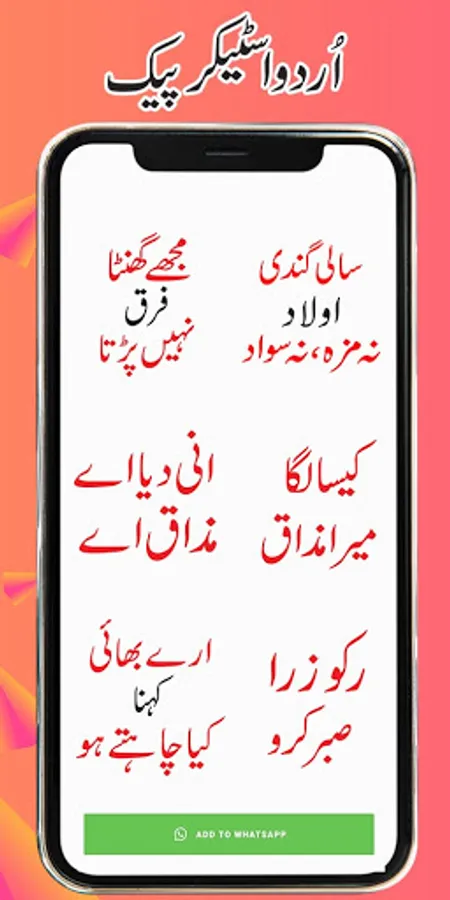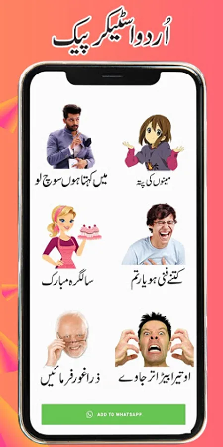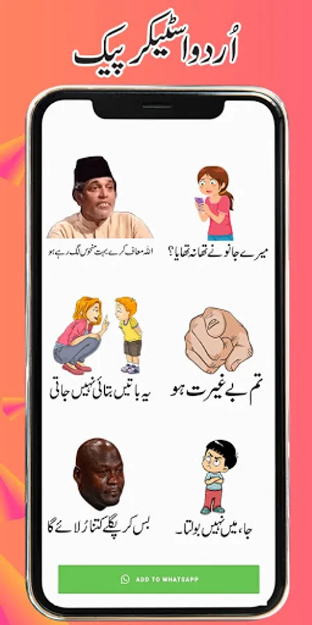 Urdu Stickers for whatsapp is the best app to communicate in a different way with latest urdu stickers and funny stickers. Stickers are best way to express your feeling with friends and loved ones. Stickers are best way to send some funny, love or emotional messages. Stickers can change the mood of your family memeber or friend. Also you can show you emotion with stickers if you are happy or angry. The stickers pack contains urdu sticker for whatsapp, urdu words, urdu sentences for whatsapp, names, urdu memes sticker for whatsaapp, ladan jafri sticker for whatsapp, moeen akhtar stickers, love stickers for whatsapp, happy birthday stickers for whatsapp and a lot more.