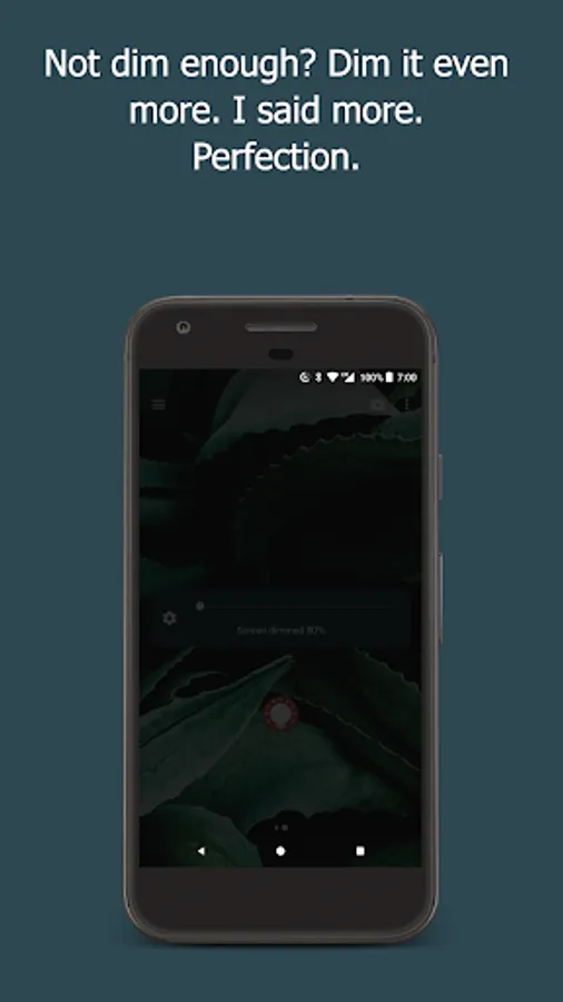 * Apply a dark screen filter over the the Application Window to further dim the screen. Android OS limitations however prevent the filter from drawing over the Notification Drawer.