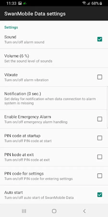 SwanMobile Data will receive alarms as long as the phone is connected to a local LAN network on Wi-Fi, or on the telecommunication providers network via GPRS, 3G or similar. The user does not have to worry about switching networks, as this is automatically handled by SwanMobile Data.