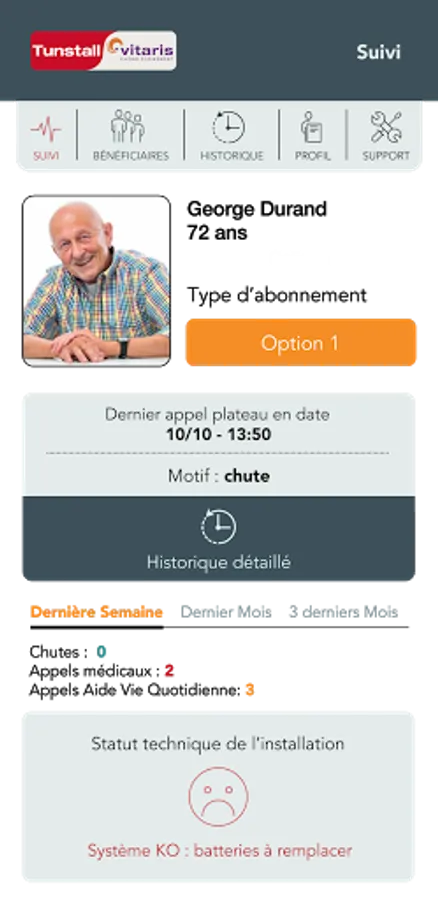 This application allows you to monitor the subscription of your loved one: monitoring of calls made to our listening and assistance center, monitoring of the proper functioning of the equipment, management of contract modification requests: reporting of absence, modification of contact details, request for a tax certificate ...