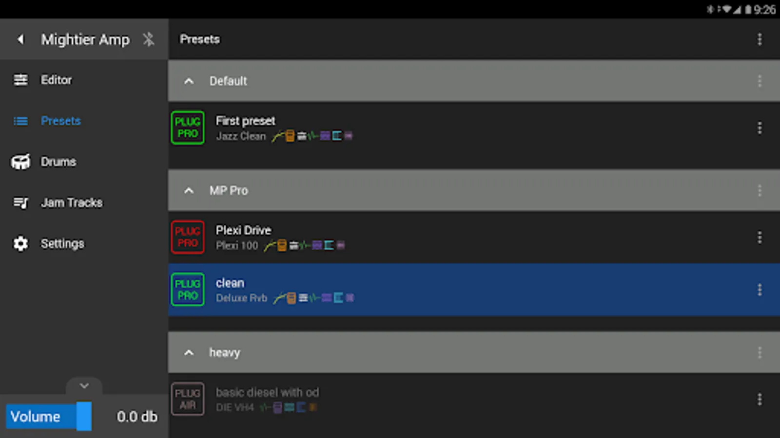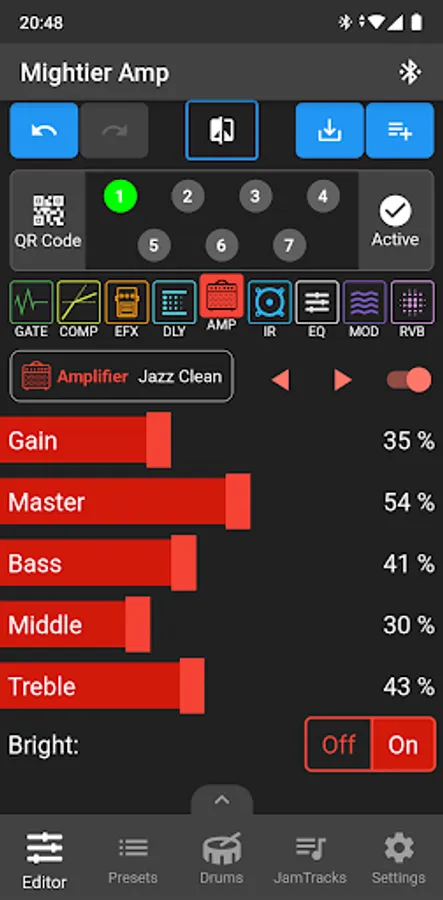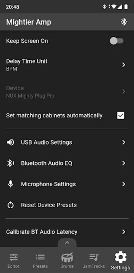 Mightier Amp is a remote control and management app for guitar amplifiers from the NUX Mighty series. It is an alternative to the official app. With Mightier Amp, you'll have all the functionality of the official app, plus many enhancements: