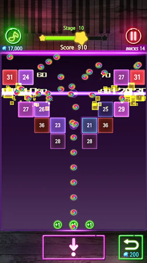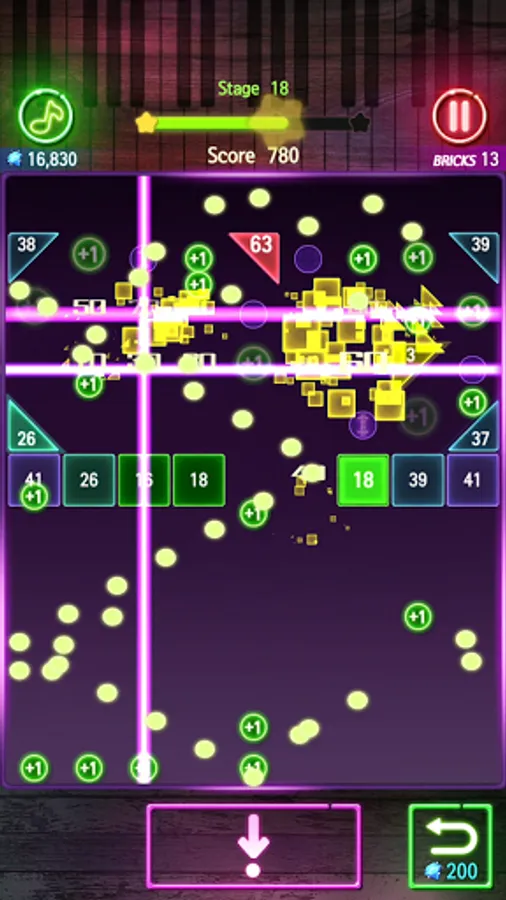 - Touch the screen to set the angle of fire and release to unleash balls.