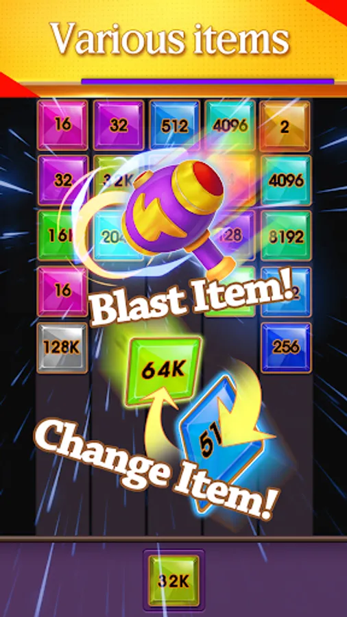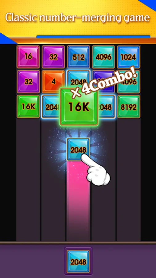 - Earn better scores by combining blocks of increasingly larger numbers of 1024, 2048, 4096.