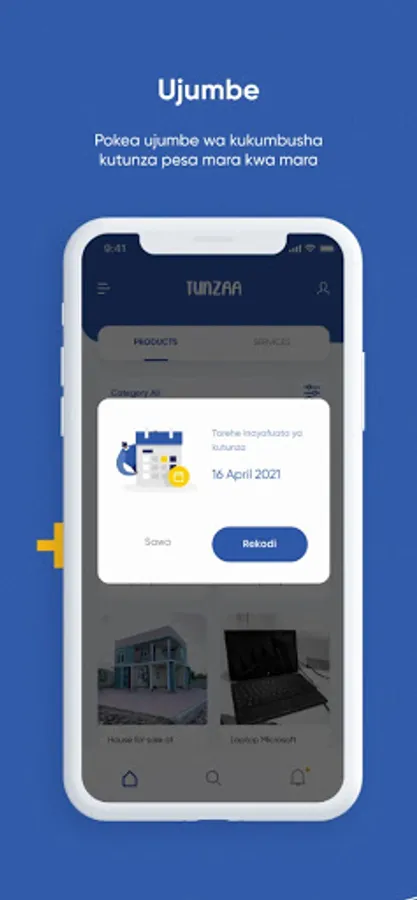 Tunzaa inakuwezesha kufanya malipo ya bidhaa na huduma kwa kiwango kidogo cha pesa kwa kasi yako mwenyewe moja kwa moja kutoka kwenye simu yako ya mkononi ili iwe rahisi kufikia malengo na mipango yako.