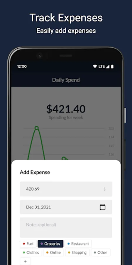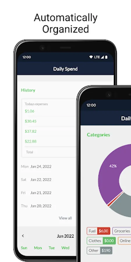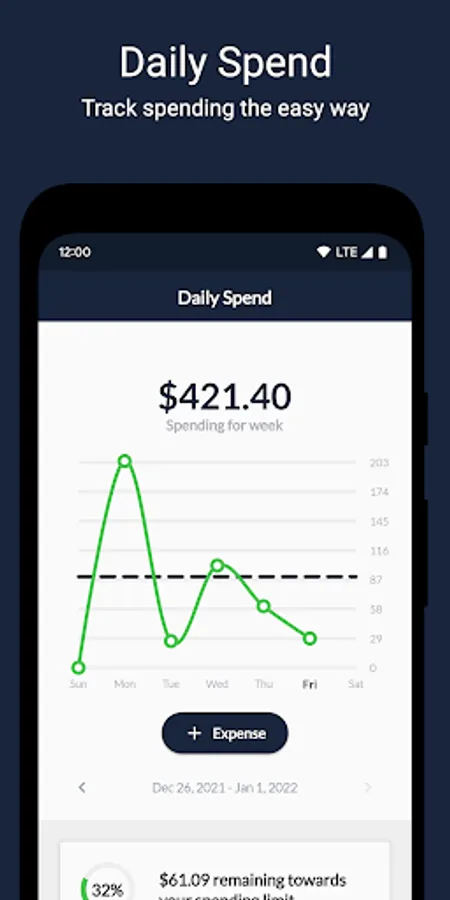 Set spending limits to help control expenses. Setup reminders to help build healthy financial habits. Get helpful financial insights at a glance with the Daily Spend expense manager.