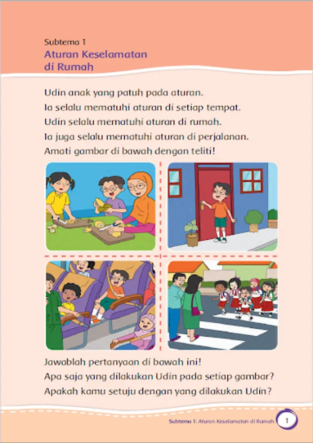 Electronic School Book (BSE) Theme 8 Safety at Home & Travel Class 1 Elementary School Curriculum 2013. This application is made to facilitate students learning Theme 8 Safety at Home & Travel anywhere and anytime without having to use an internet connection (Can be Offline).