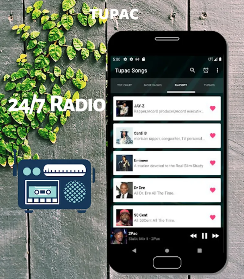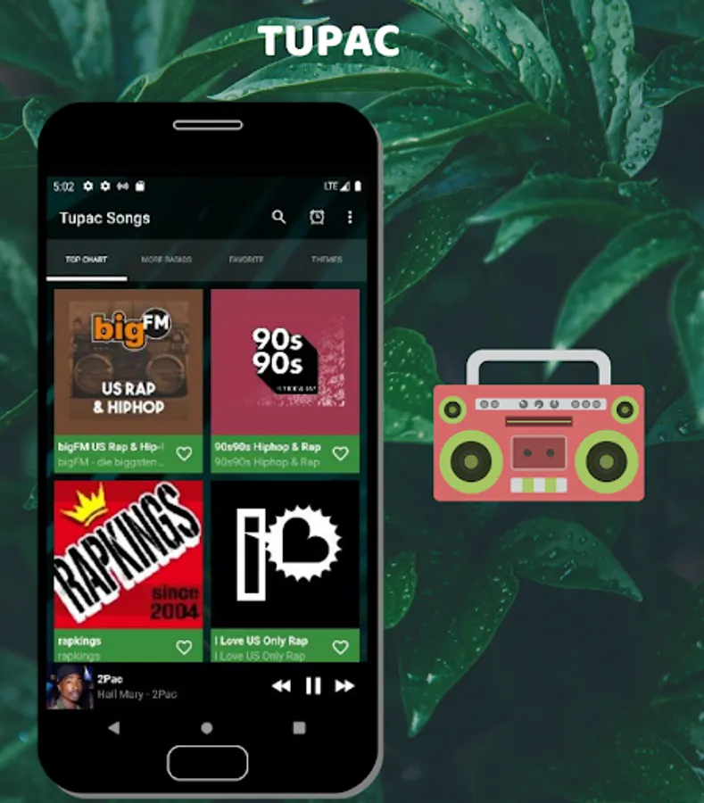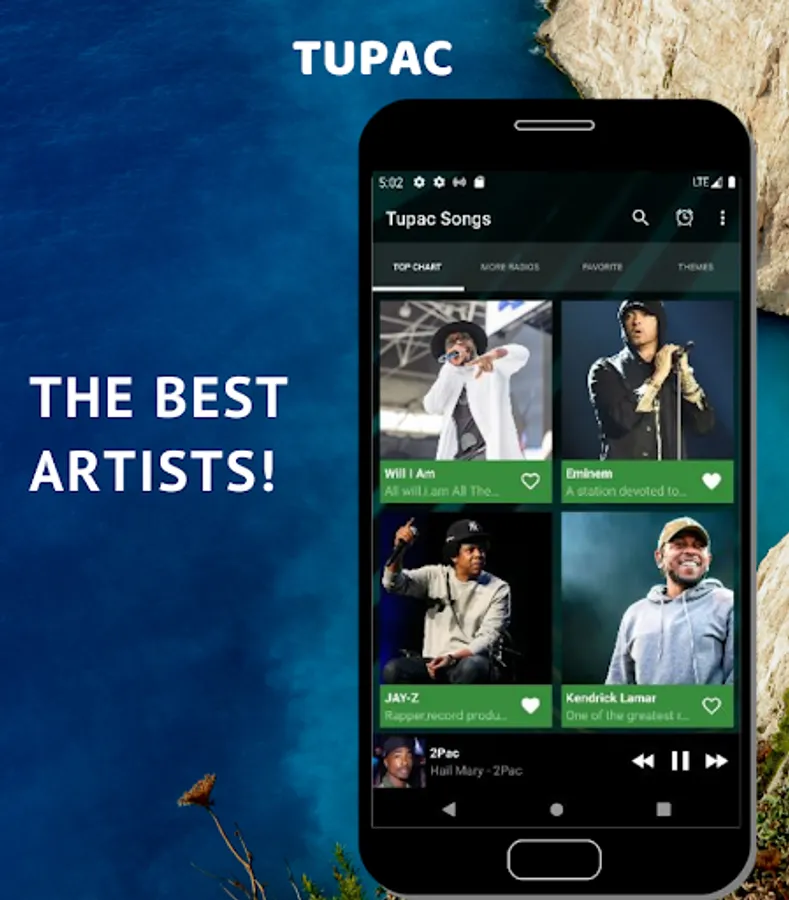 The Tupac Songs-Toda la Musica app plays music online that allows users to listen to the songs of Tupac, one of hip hop's most influential artists. With a wide selection of Tupac songs, the app offers a seamless, high-quality online streaming experience so users can enjoy Tupac's music anytime, anywhere.