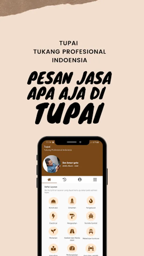 Tupai adalah sebuah aplikasi bagi pencari kerja maupun yang membutuhkan layanan jasa pekerja dengan mengutamakan kualitas sehingga terbentuk sebuah komunitas Tukang Profesional Indonesia.